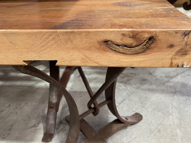 Vintage Wooden Top Metal Base Bench Seat #7140
