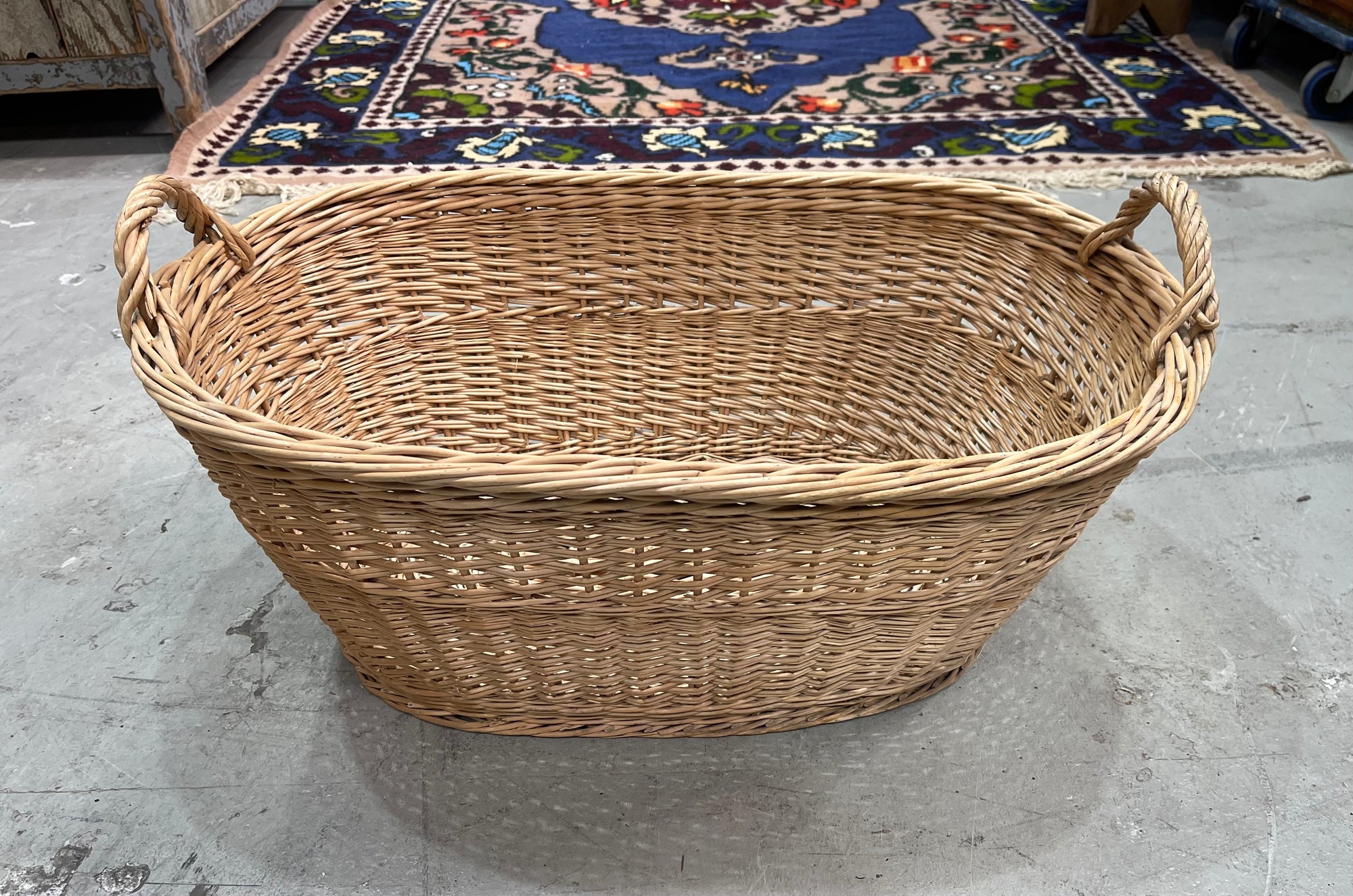 Vintage Belgian Wicker Laundry Basket #6841